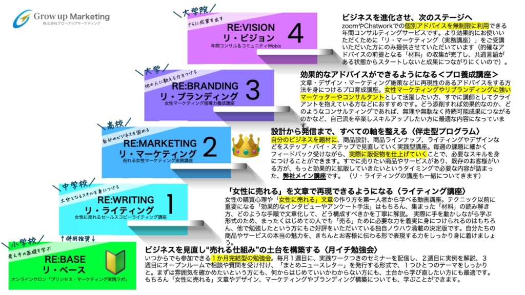 また、女性向けのマーケティングやセールスコピーライティングの理論プリンセス・マーケティング®️」を考案者本人から、深く実践的に学べるのは、この講座だけです。